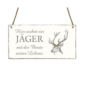 Türschild Hier Wohnt Ein Jäger Hirsch Vintage Dekoschild Holzschild